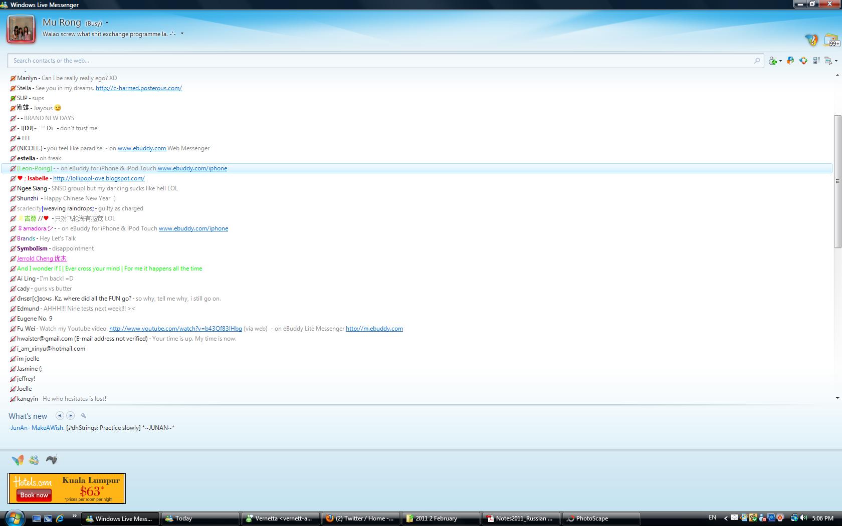 Went on to MSN today to realise that MSN blocked all my contacts AGAIN. Anyway, talked to vernetta on msn today!!! omg i miss my old friends so much nawww )': and i miss all the gossip shit haha i need someone to keep me updated!!!