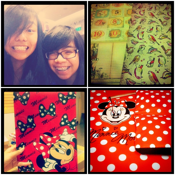 (Em and me again, Paper from paper market, file that's darn expensive HAHA, my not-updated collection of lovely red)