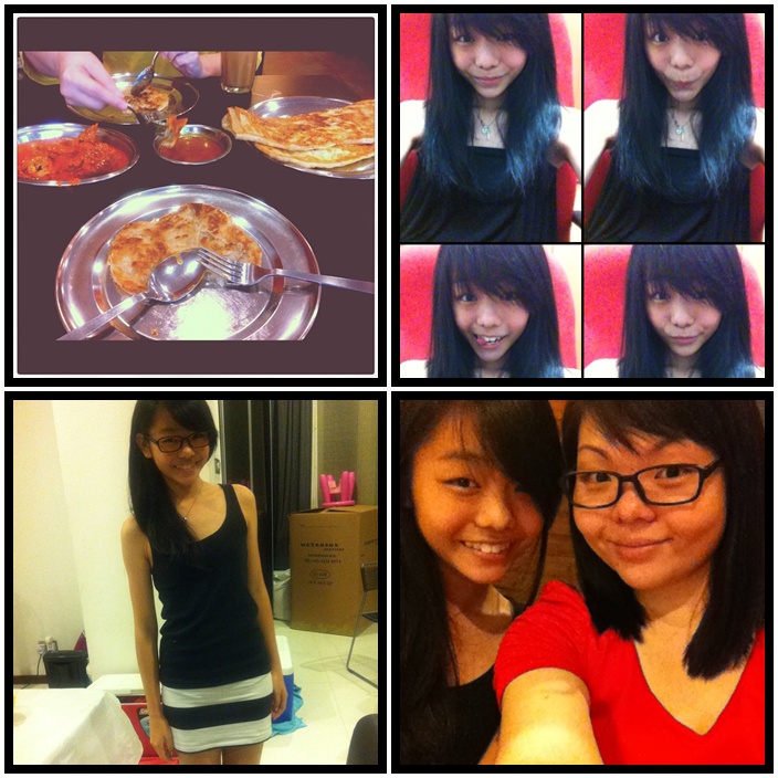 (Roti Prata with mama ng, it was not bad eh :D , Desperately missing my old fringe at that period of time, New year's eve, Sis and me looking cui3 HAHA)