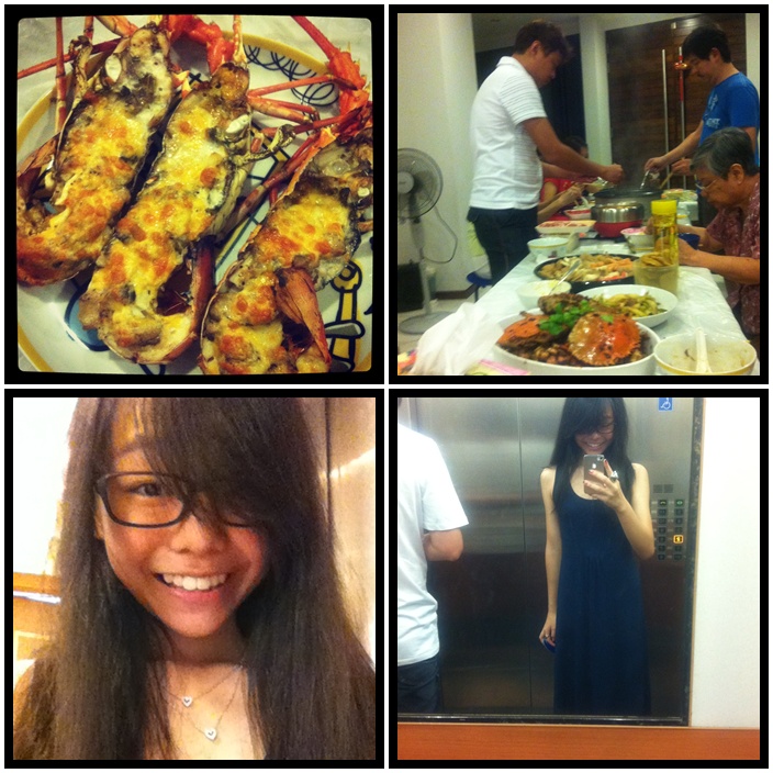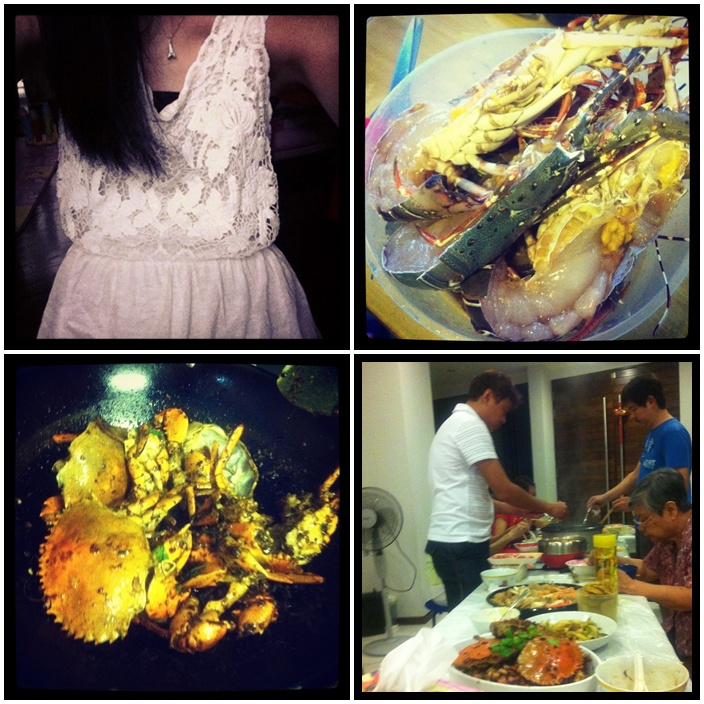 (New year's eve dress, Good fresh lobster sigh, Black pepper crab, family dinner w steamboat, good food, and good movie)
