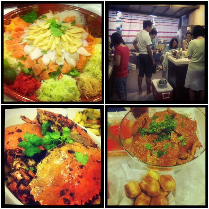 (Yu sheng, everyone preparing the food tgth, Finished black pepper crab, chill crab plus superb buns! )