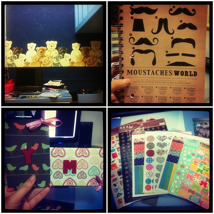 Curtain in bedroom since young ^_^ , My moustache notebook, Bday cards for minying and Yuling, Beautiful stickers :)